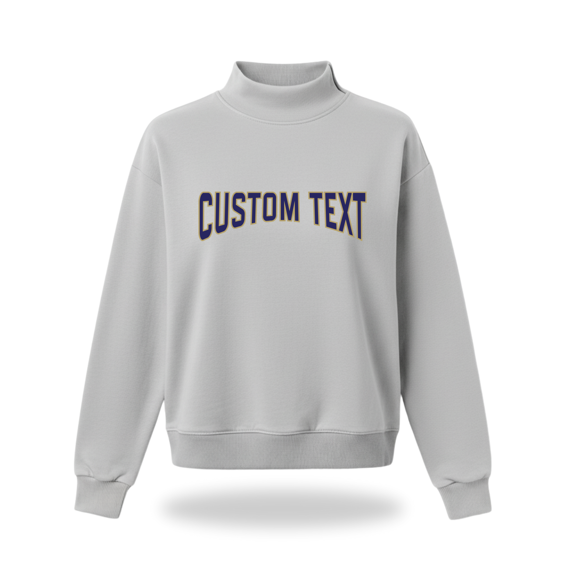 Mock Neck with bold duo color text half curved text.