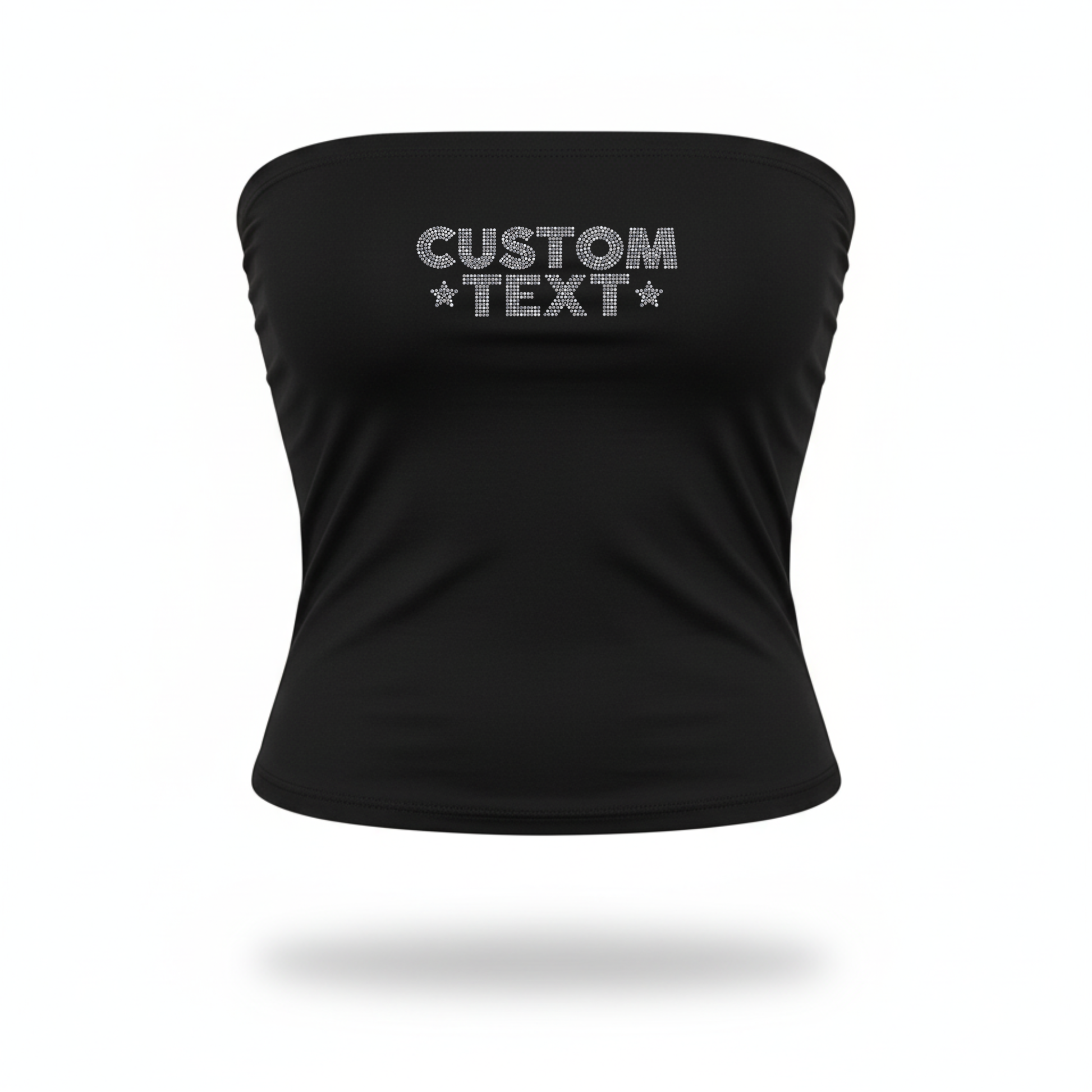 Tube top with bold gem stone text & mini gem stars (not real gems).
