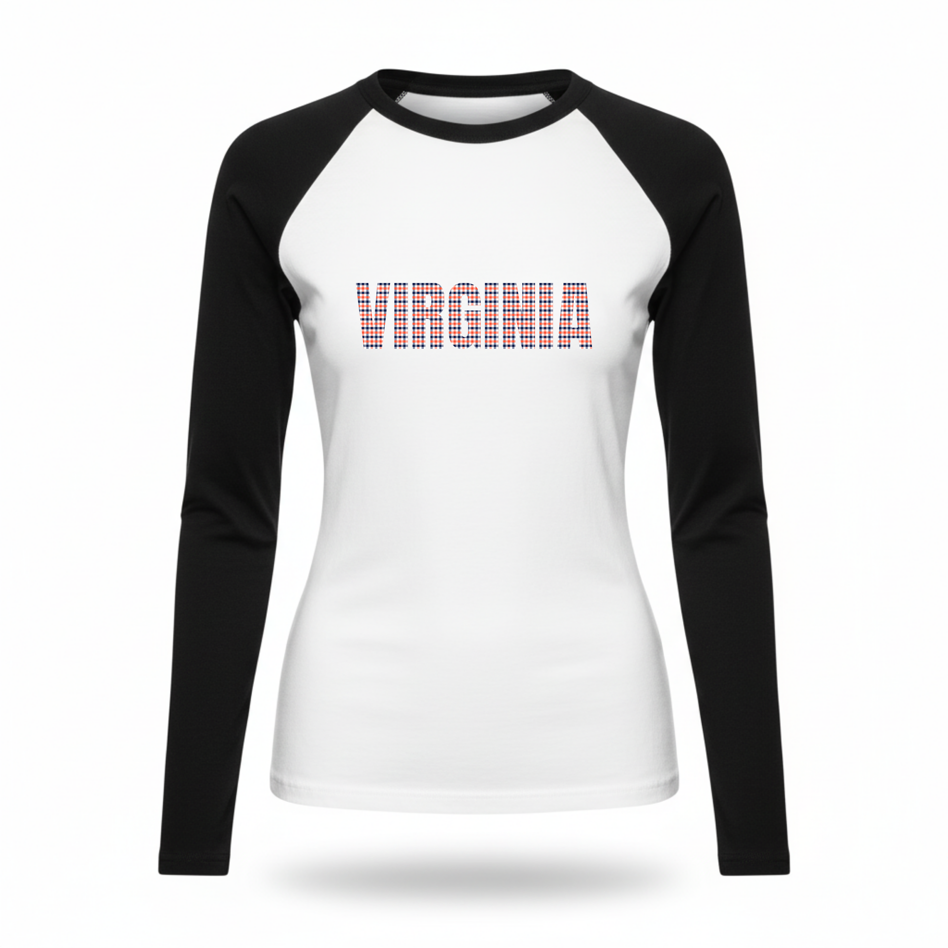 Fitted long sleeve shirt with bold gingham text.